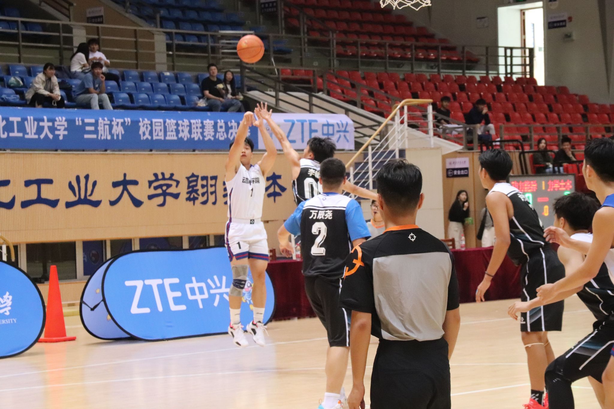 篮球队在“三航杯”的最后一段拼搏征程。4进2比赛中,第一场由于主力阵容缺失,没能把握机会,落后物理学院四分。在第二场中,mx动漫
