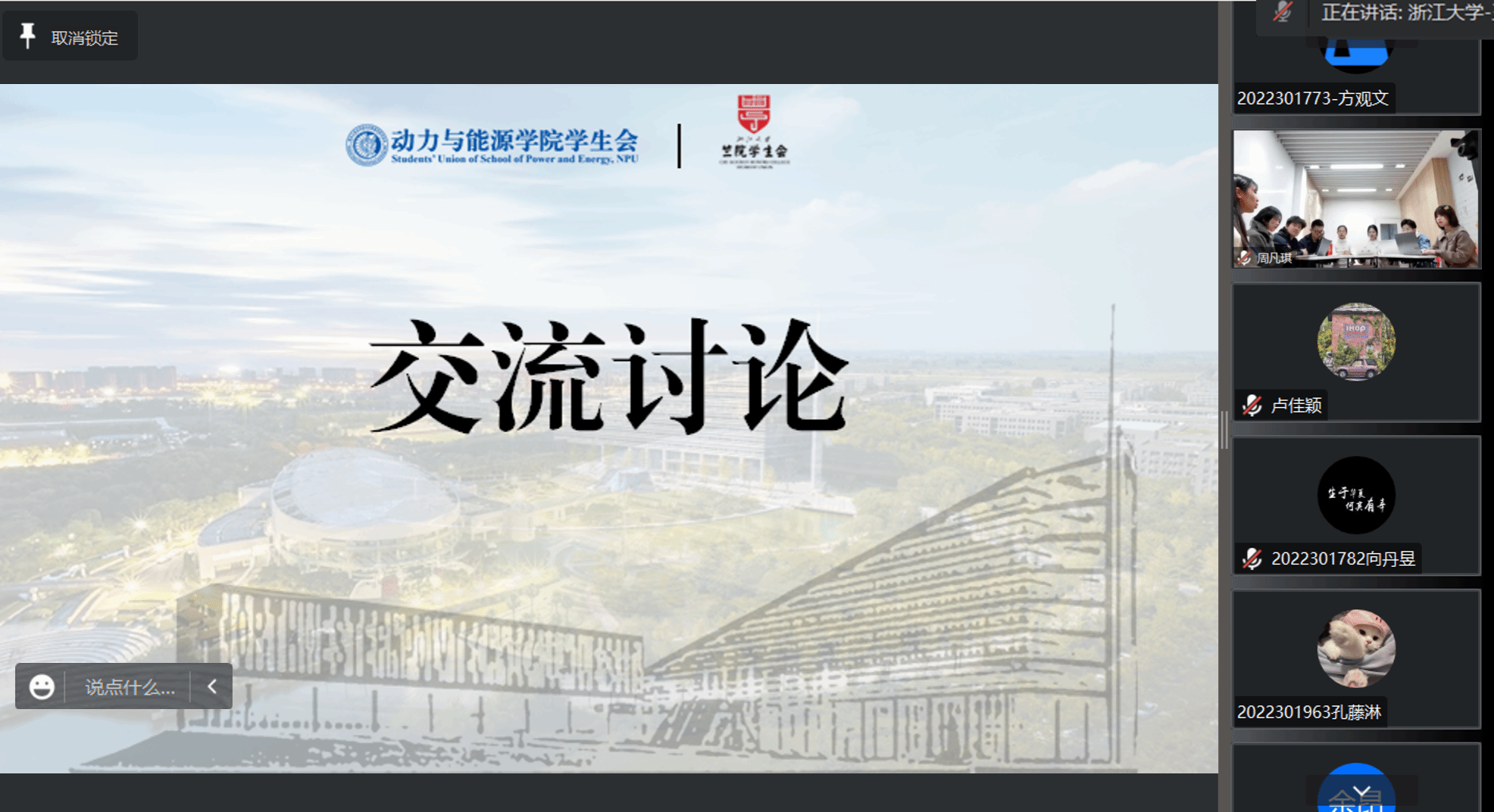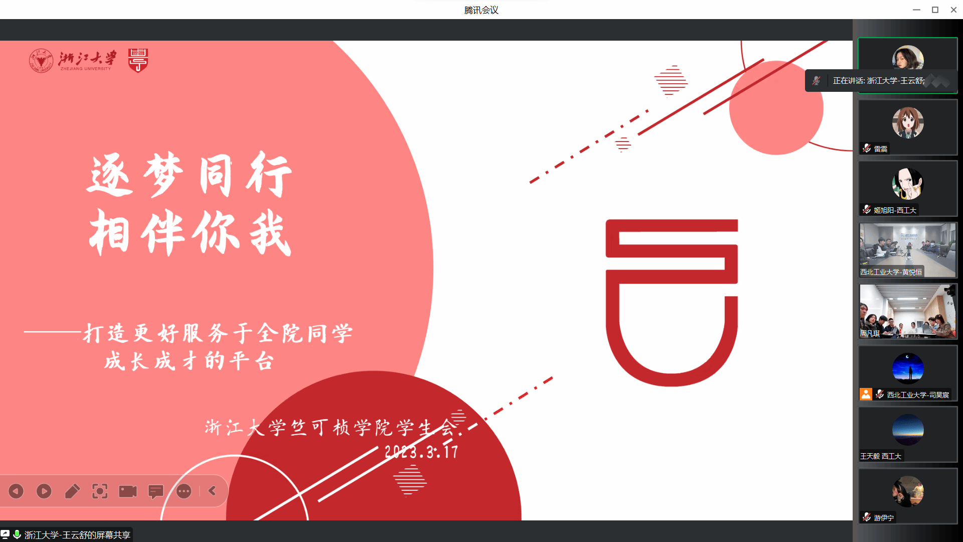 2023年3月17日晚,“求是勇毅,动力先行”浙大学子对话工大青年活动正式开展。活动采用线上视频会议形式,设置线下双会场与线上会场,围绕全国两会精神与学生会组织,双方通过互相交流学习、青年对话,碰撞思想火花。浙江大学竺可桢学院团委书记卢佳颖老师、mx动漫