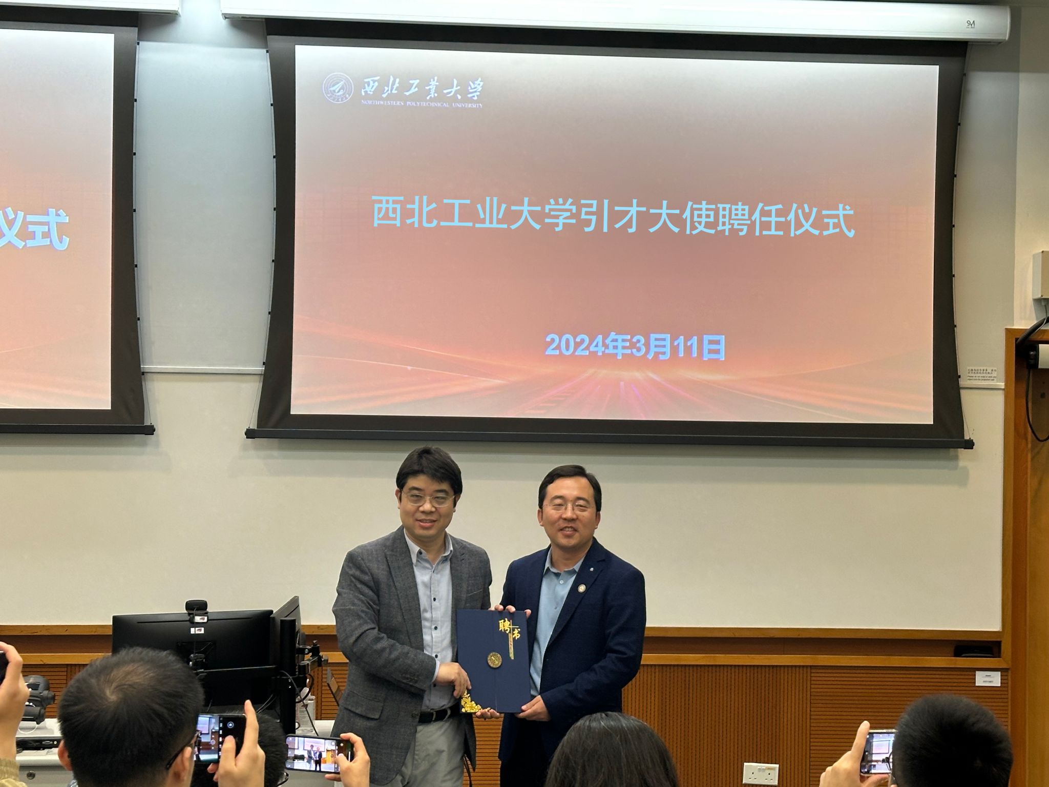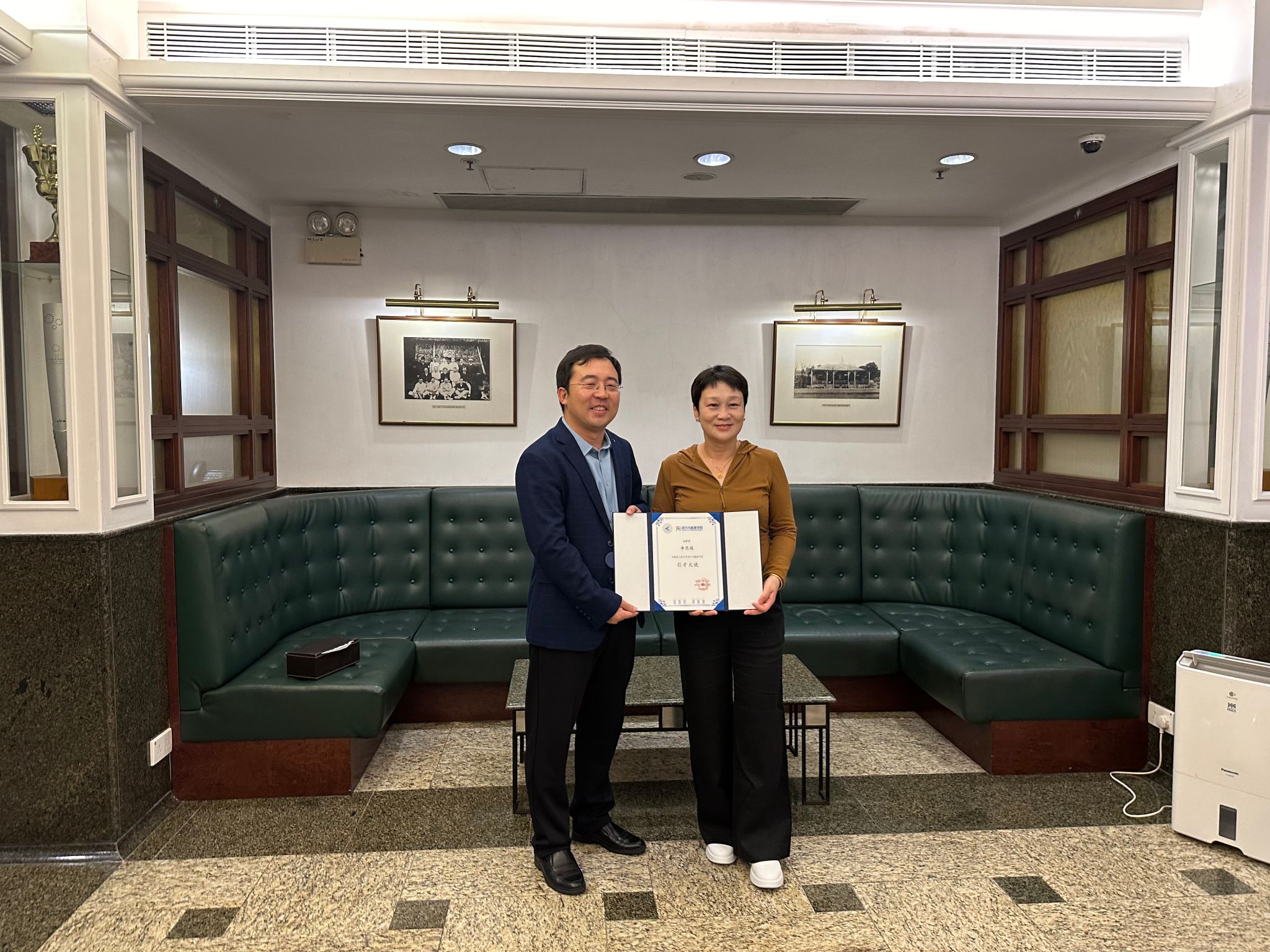 期间,代表团还与香港城市大学、香港大学、香港科技大学、香港理工大学多位教授围绕人才引进、科研合作、学生联合培养等工作进行了深入探讨,拜访了多位杰出校友,并为他们颁发了引才大使证书。