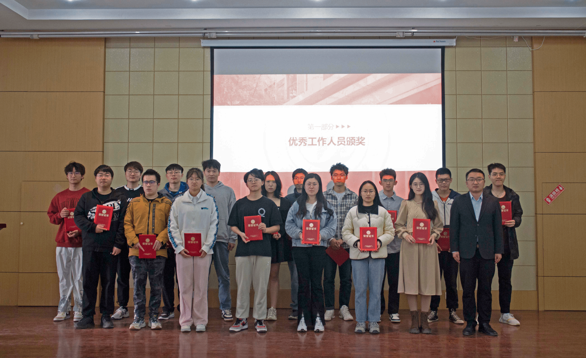 团委、学生会、研究生会优秀工作人员及志愿者颁发证书并合影留念。