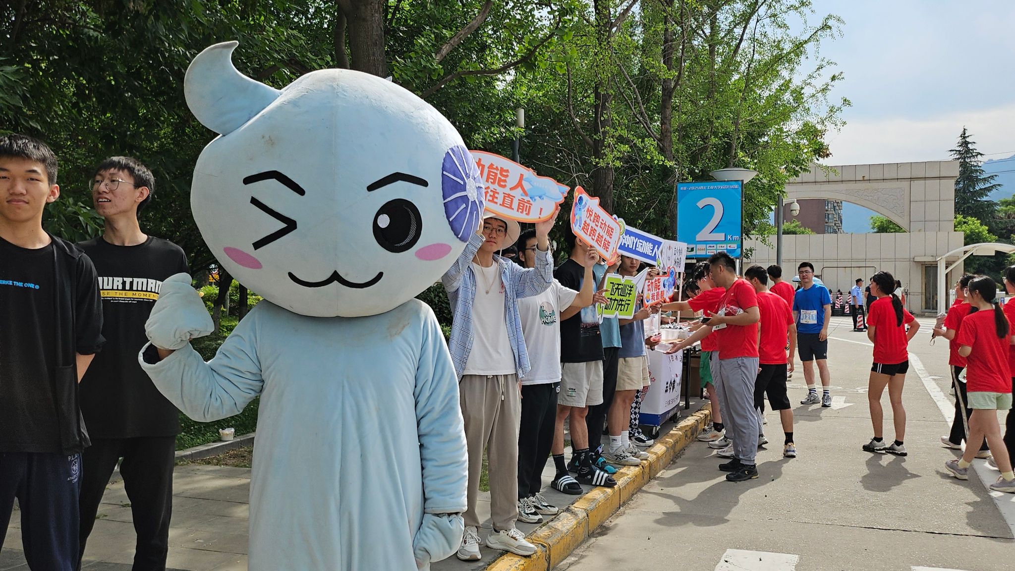 的参赛同学、老师、志愿者一同进行了全院的大合影,与小涡的合影也广受欢迎。动能学子动力满满,蓄势待发。随着发令枪响,比赛正式开始。