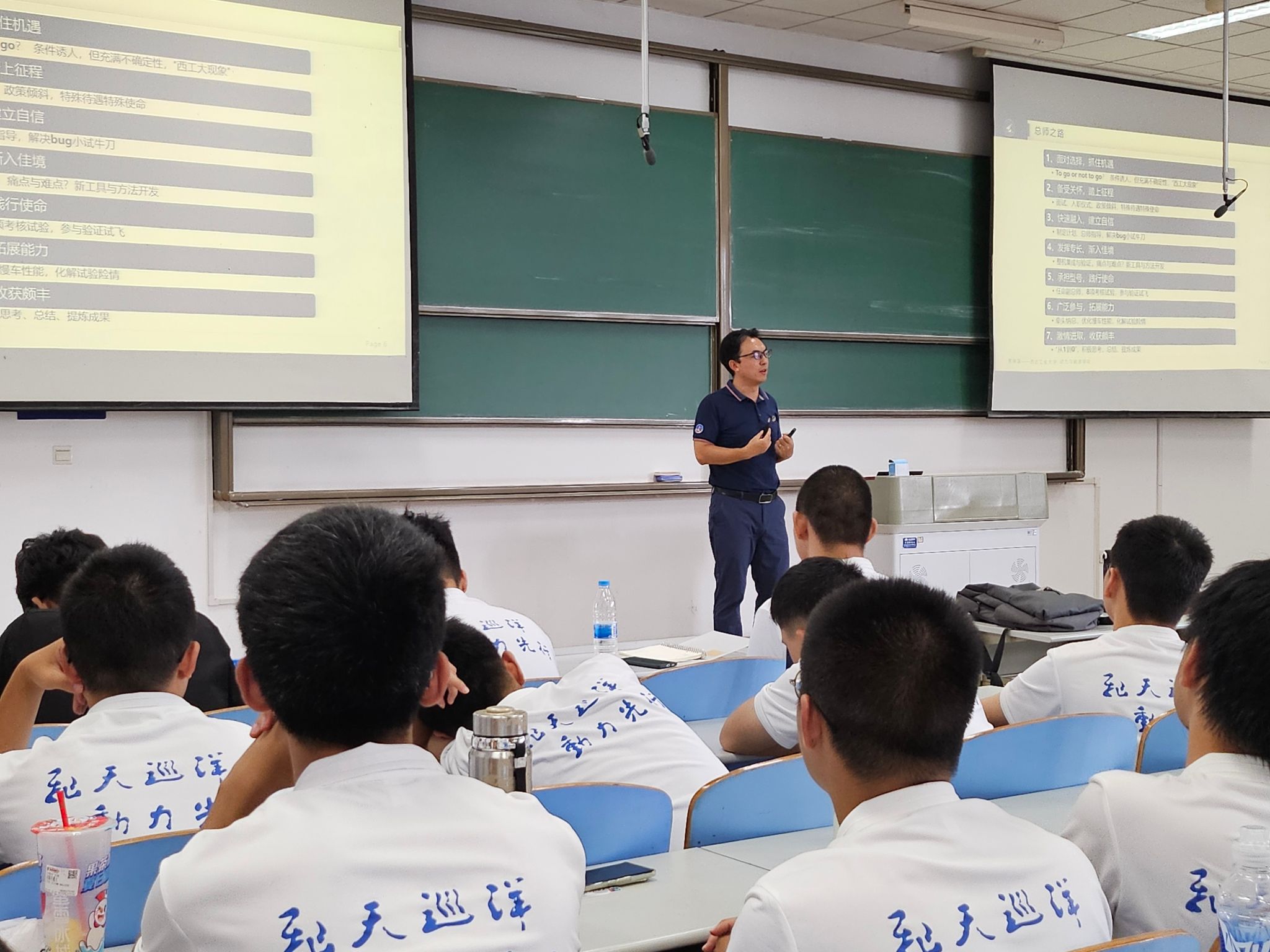 丁凯峰总师以一个从业者的身份讲述了对航空的理解,对航空职业的理解,和对西工大校训校风的理解。并且以他熟悉的西工大毕业生、行业标杆人物为例,阐述西工大在航空航天界不可动摇的地位。结合自己的工作经验和人生感悟,向同学们传授了如何在职业生涯中保持初心、追求卓越的心得体会。新生们在聆听丁凯峰总师的分享后,不仅加深了对航空航天领域的理解,还领悟到在职业生涯中保持初心、追求卓越的重要性。在未来,同学们也会更加坚定自己的目标,传承西工大的优良校训校风,努力为国家和行业做出贡献。