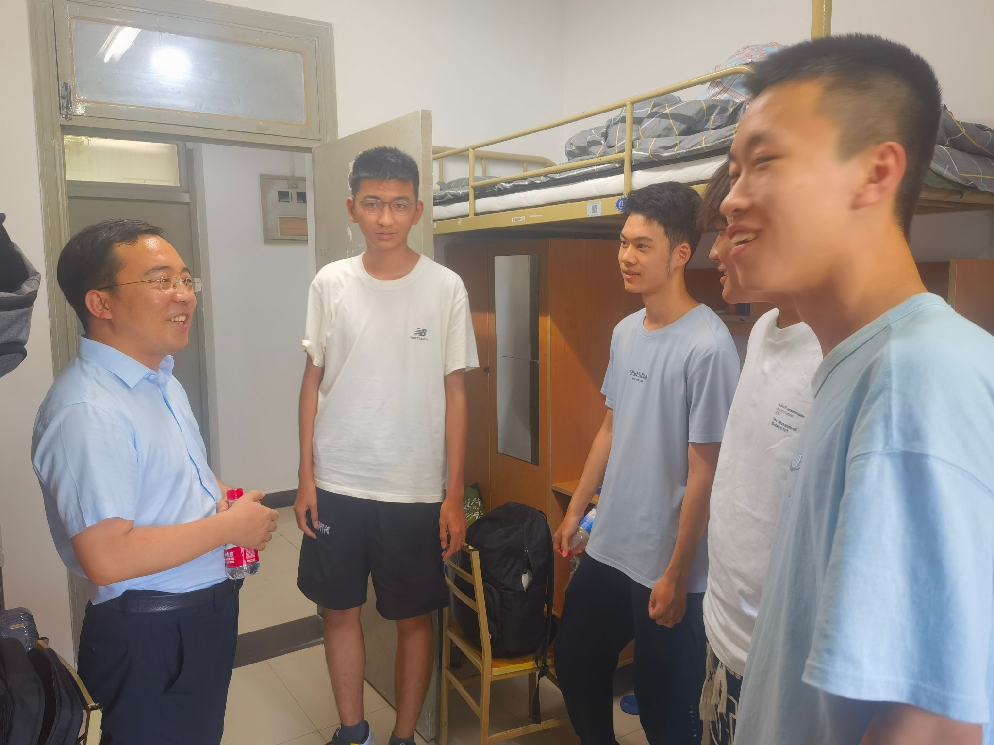 8月30日,徐永超副书记和肖强辅导员前往硕士研究生新生宿舍,了解了硕士新生们的生活状况,如宿舍卫生,学业规划,有无苦难需要帮助等等。硕士新生们也表示将专心科研,努力提升综合素养。