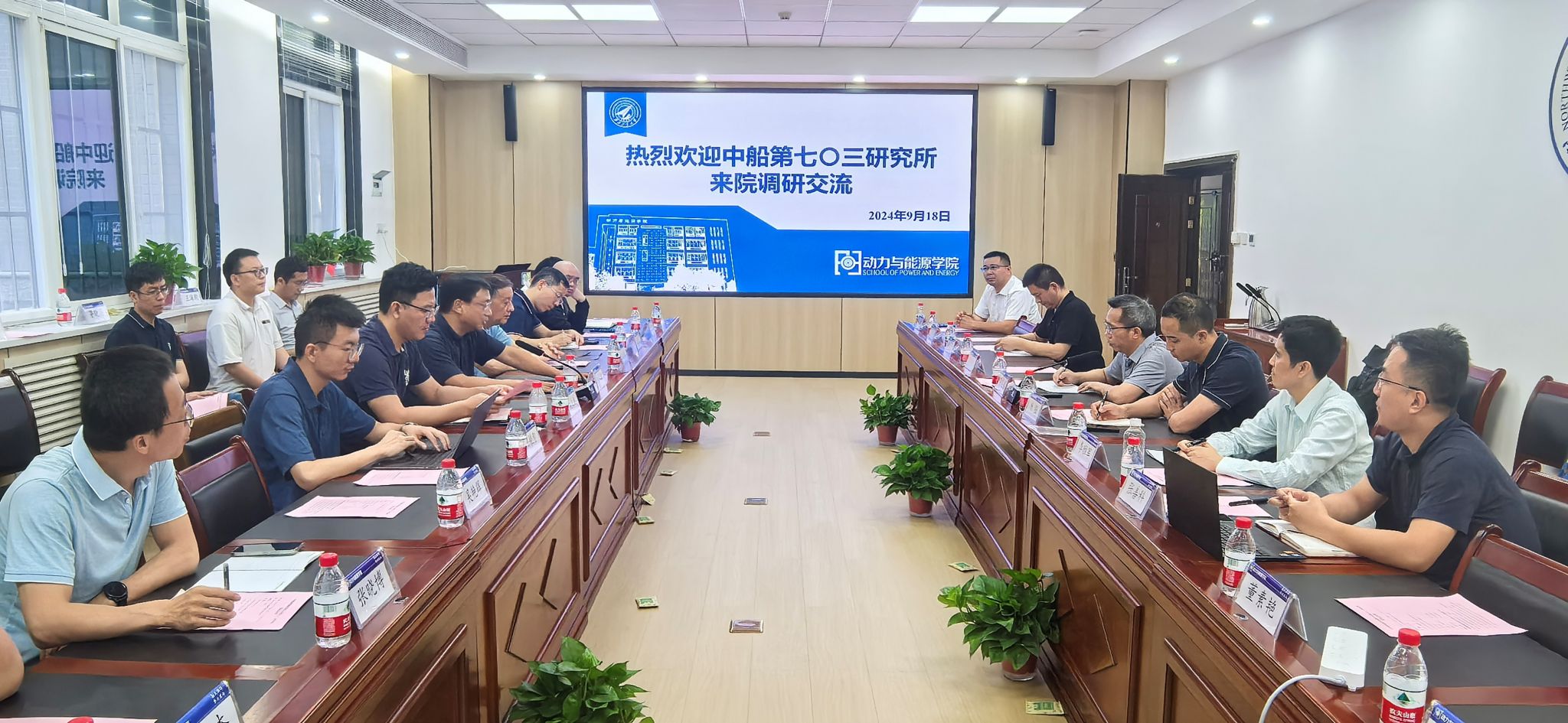 2024年9月18日上午,中国船舶集团有限公司第七〇三研究所燃气轮机事业部长李名家、规划发展部副部长杨强等一行7人到访学院调研交流。学院党委书记王占学、院长刘存良、副院长高文君以及部分教师代表参加座谈会。