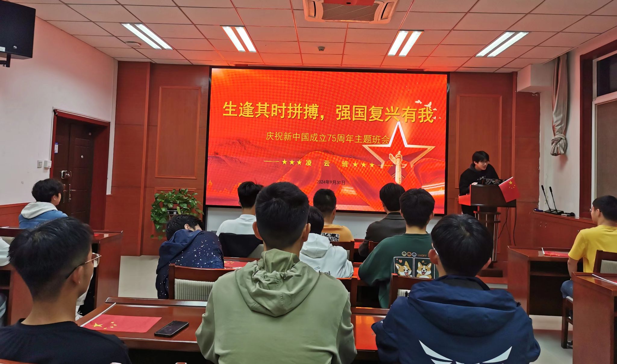 同学们观看了由央视新闻为庆祝中华人民共和国成立75周年特别制作的歌曲视频《心同此愿》,在歌声中激发同学们的爱国热情。2023级凌云班班长冯晨希带领同学们回望新中国七十五年的风雨兼程,从苦难到辉煌的壮丽史诗:抗美援朝、改革开放、经济腾飞、脱贫攻坚、文化繁荣、科技崛起,这些辉煌成就,如同一座座里程碑,矗立在时间的长河里,激励着新时代的青年不忘初心,砥砺前行。