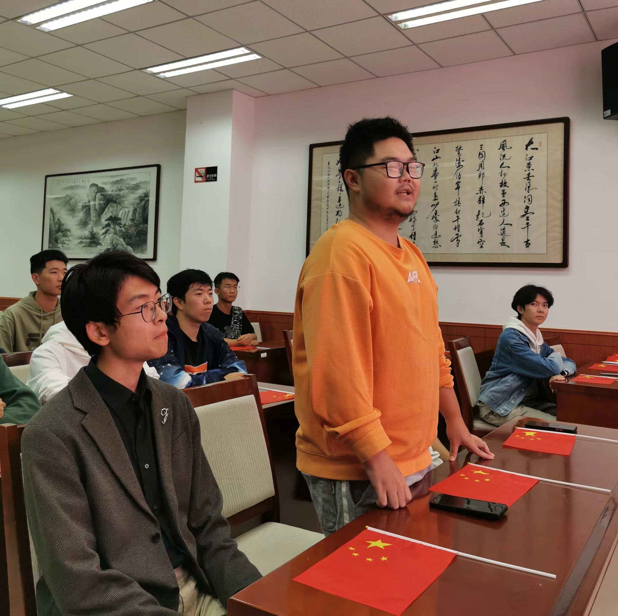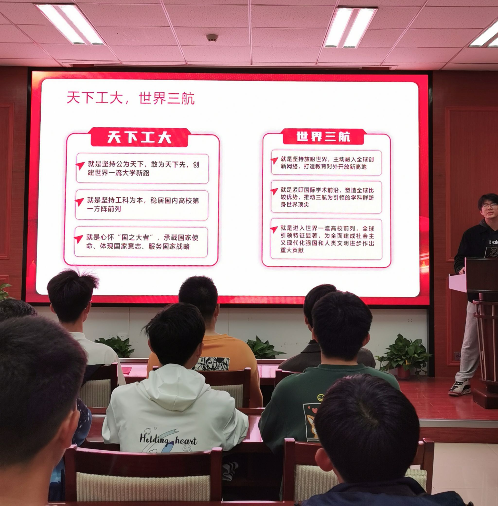 主题班会分为三个篇章:“追忆来时路,重温光辉岁月”、“天下工大、世界三航”、“告白我的祖国”。