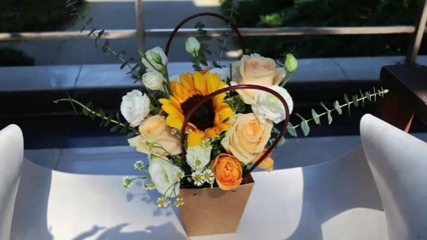 活动现场,花艺师为同学们讲解了基础花艺知识,包括花材选择、色彩搭配、造型技巧等,并演示了插花技艺。师生们以向日葵、玫瑰、洋桔梗等花材充分发挥想象力,创作出独具个人风格的花艺作品。