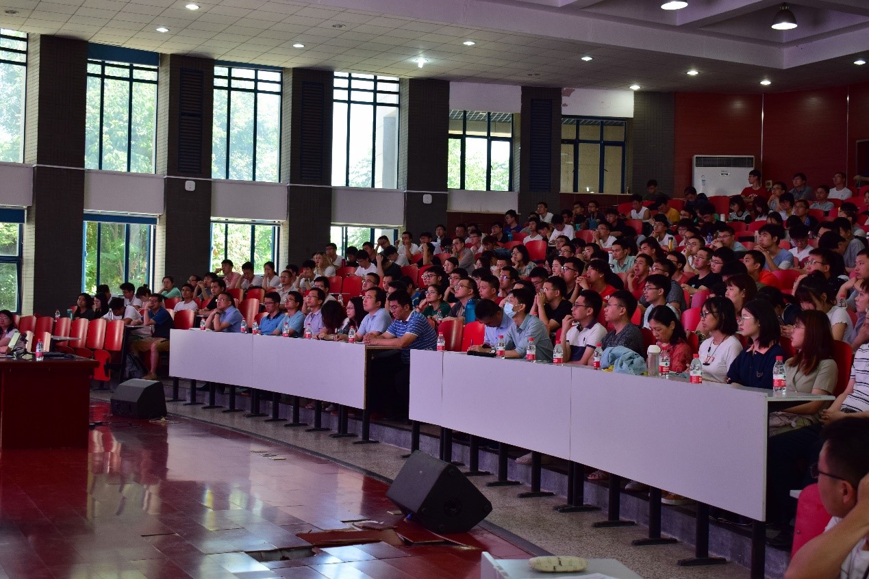 领导班子及全体师生党员近400人参加了报告会,会议由学院党委书记闫育周主持。