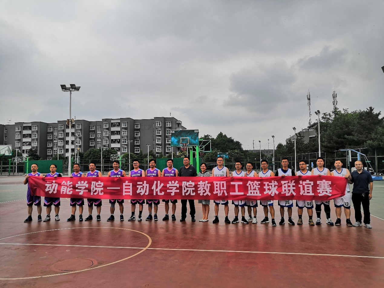 工会组织举办了与自动化学院教职工的篮球友谊赛。动力能源学院党委书记闫育周、部门工会主席韩晓娜及自动化学院党委书记韩军伟、副书记管峻、部门工会主席高红带领双方队员展开赛事。