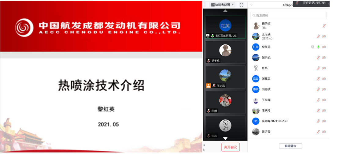 2021年5月23日,由中国航发成发一级技术专家黎红英老师主讲的“热喷涂技术介绍”专题讲座在线上举行。mx动漫