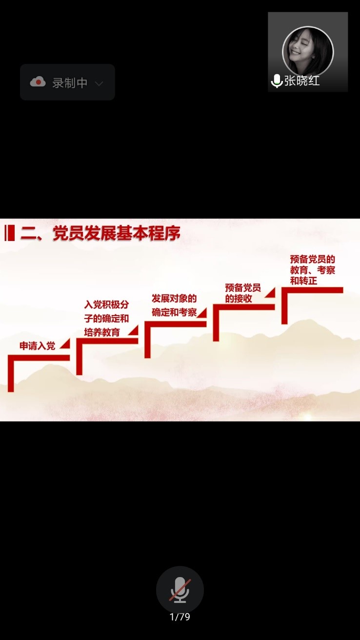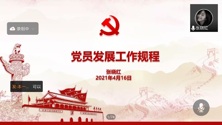组织春季学期新发展的入党积极分子和发展对象共计200余人,一起线上聆听了校团委张晓红老师一次生动的党课。张晓红老师主要从党员发展基本程序和后期党员材料填写的注意事项这两方面给同学们带来了详尽的讲解。