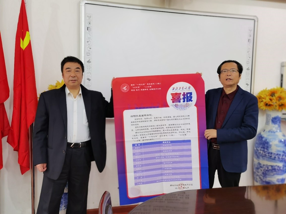 赠予东辰国际学校喜报,并与杨俊校长合影留念。