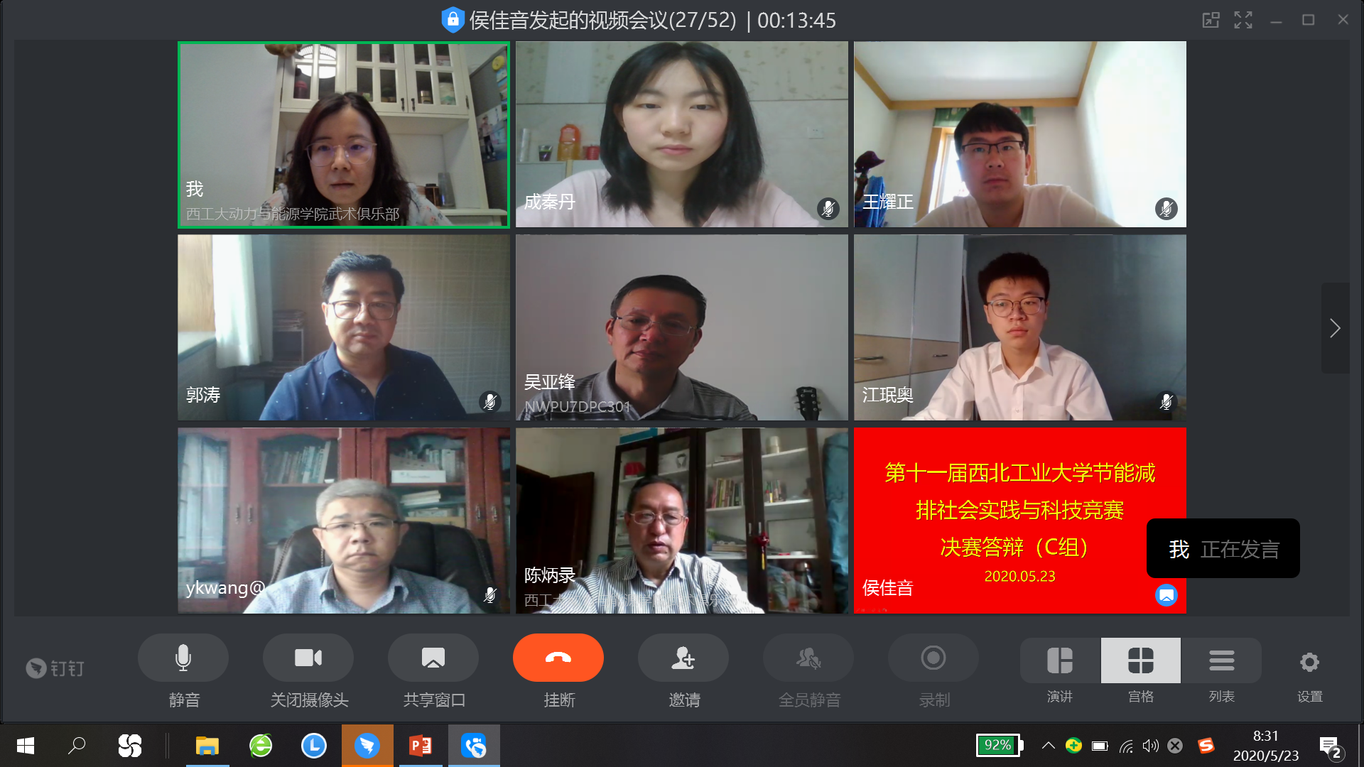 决赛答辩期间,全体参赛学生围绕“节能减排、绿色能源”主题进行了线上答辩与作品展示。每个队伍的队员各有所长、分工明确、积极配合与协商,其中负责线上答辩的人员思路清晰、逻辑严谨、较为全面和细致地展示了作品的具体内容,创新与实践。各个参赛队伍在这次答辩中展开了一场激烈的思想碰撞和创意比拼,展示了理论与实践结合的创新成果,体现出较高的知识文化素养和科技创新水平。最后,评委老师们对全体参赛学生的作品均给予中肯的评价以及一定的鼓励,希望他们能够再接再厉,不断取得新的突破,更加全面深入地落实节能减排实践。经过专家评审、小组讨论、评审合议等环节将选拔出本届竞赛的获奖作品。