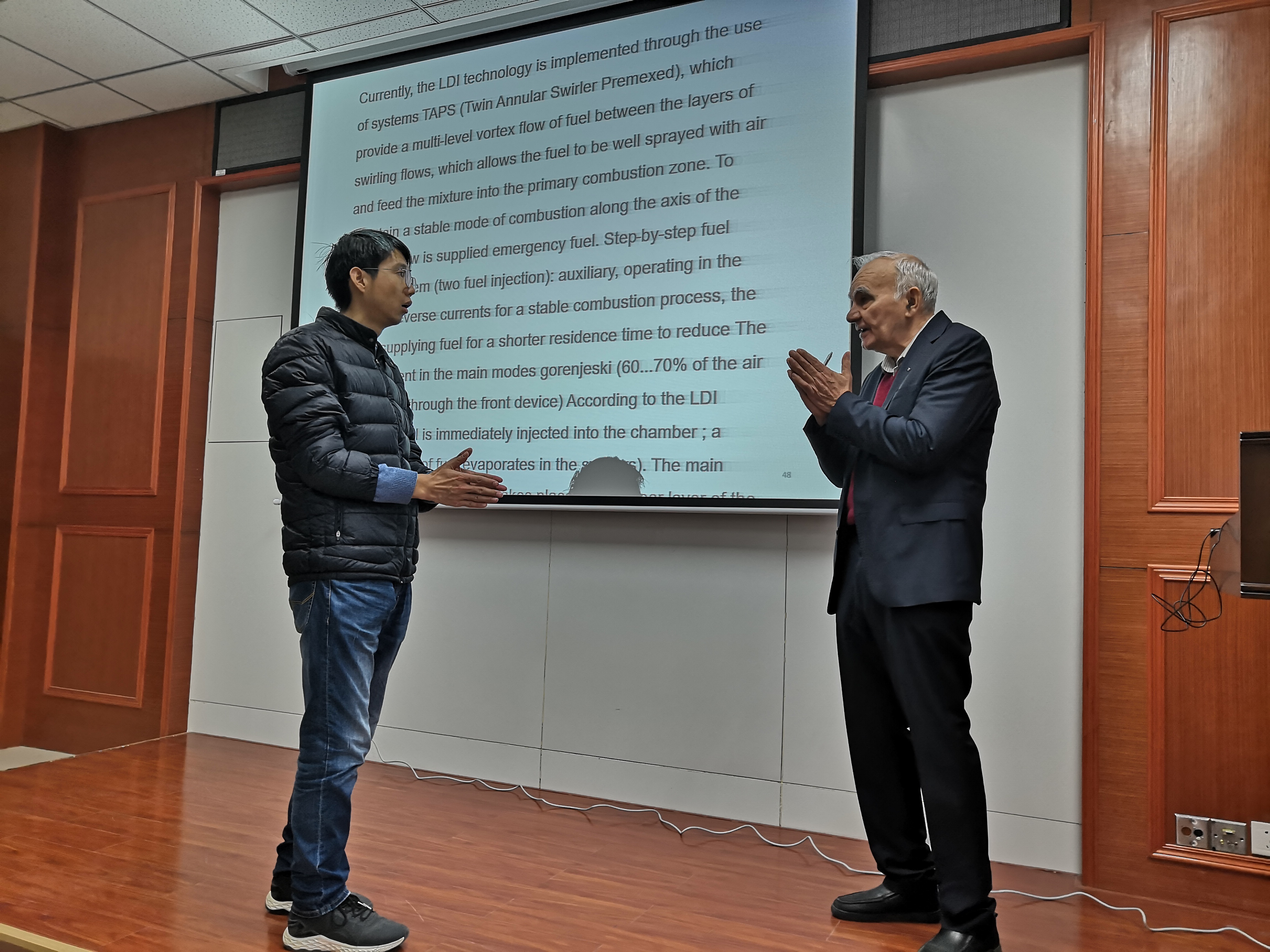 楼225会议室举行。来自喀山国立技术大学的Mingazov Bilal教授为师生们做了主题为“燃烧室中的物理过程”以及“燃烧室与生态环境”的系列学术报告会。报告会由宋文艳教授主持,相关学科教师以及学生代表共40余人参会。