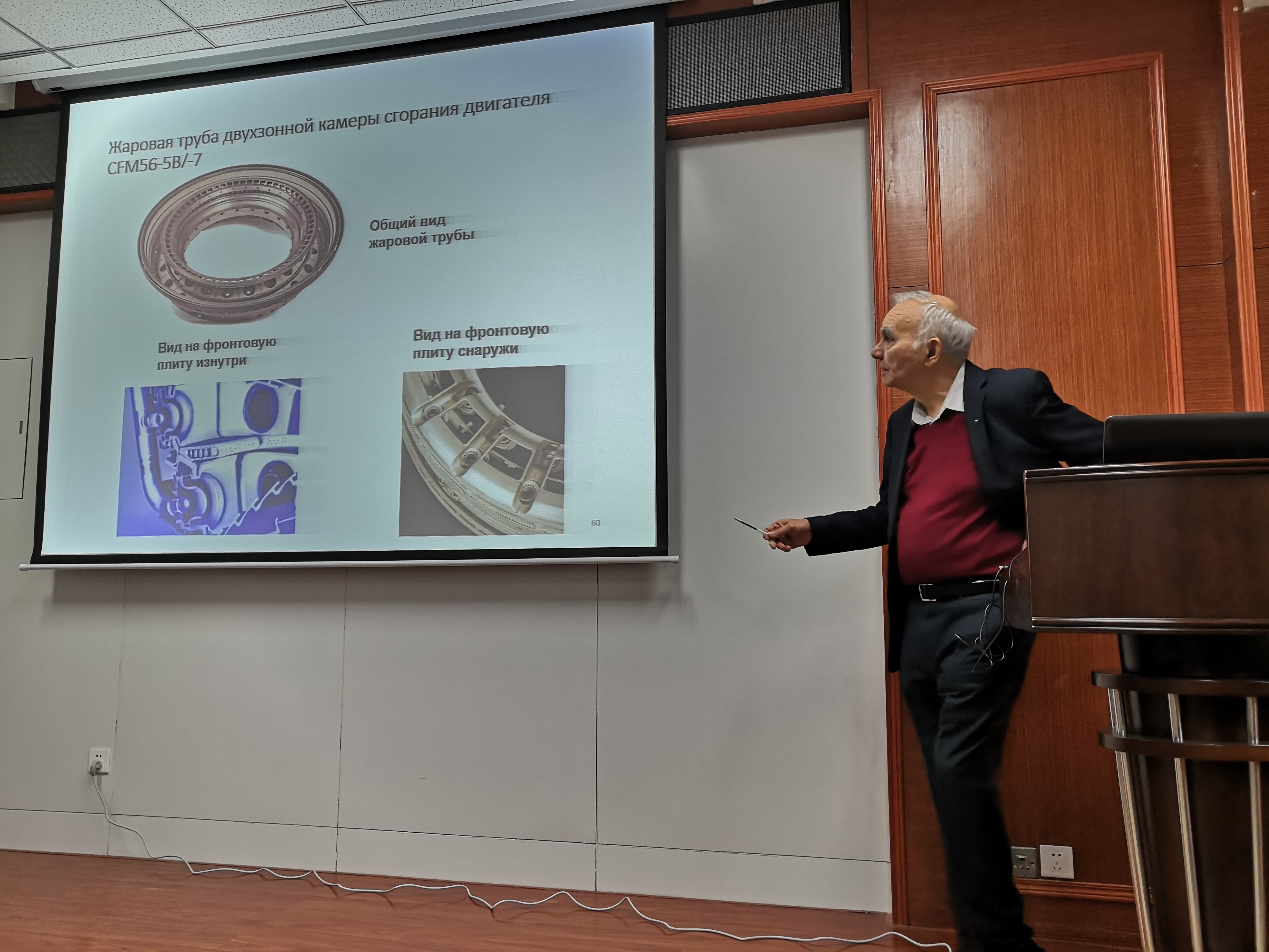 下午的报告主题为“燃烧室与生态环境”,Mingazov Bilal教授从大气的物理特征及对航空发动机的影响、飞机发动机的排放、NO,CO,CH的形成机理、有害排放物的规定、低排放燃烧技术、低排放燃烧室的设计特点这几个角度为同学们详细介绍了这一领域的国际研究前沿,极大扩宽了与会师生的视野。