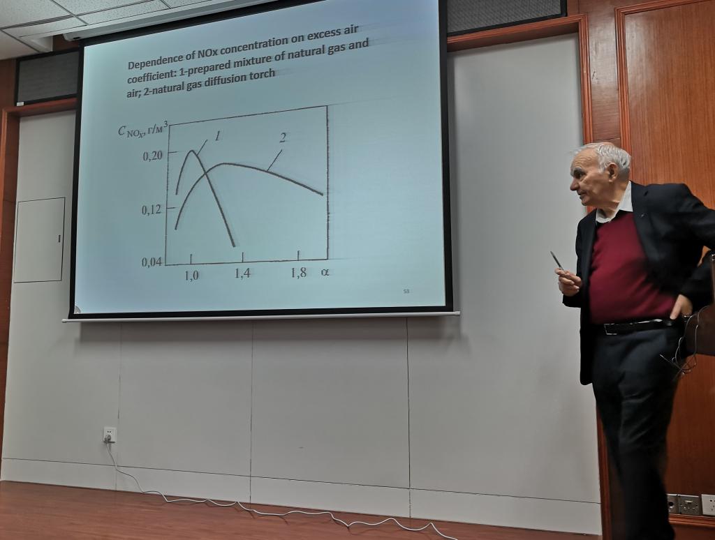 会议开始,宋文艳教授对Mingazov Bilal教授的到访表示了热烈的欢迎,并向参会的老师和学生介绍了Mingazov Bilal教授的主要研究方向和学术成就。上午的报告主题为“燃烧室中的物理过程”,报告中Mingazov Bilal教授首先介绍了燃烧领域的一些基本概况及基础知识,之后又从化学动力学和自燃的基本原理、燃烧室的特性、燃烧室设计的基本方法等方面系统阐述了他本人及其研究团队在燃烧研究领域的最新进展和成果。