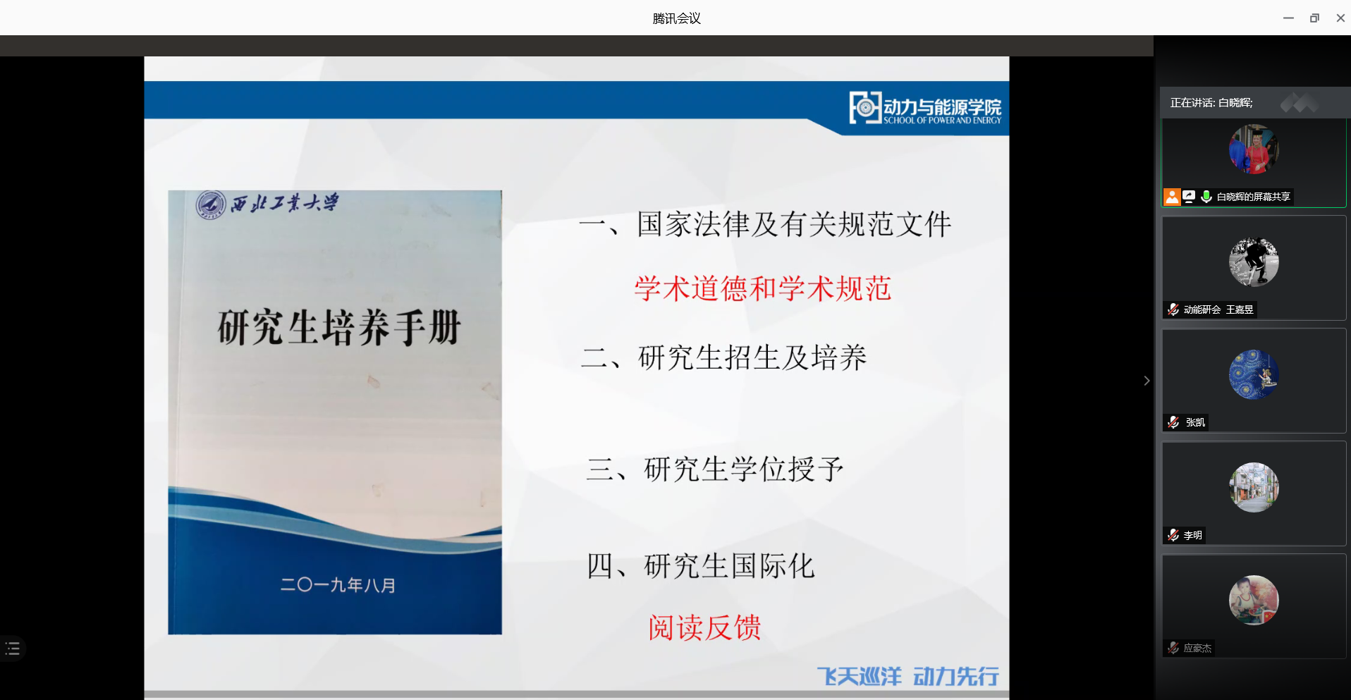而后,研究生教学秘书李斯雯就2020级研究生培养方案进行了解读。接下来,研究生辅导员白晓辉介绍了2020级研究生的基本情况以及班干部成员,学生工作的管理和交流模式。