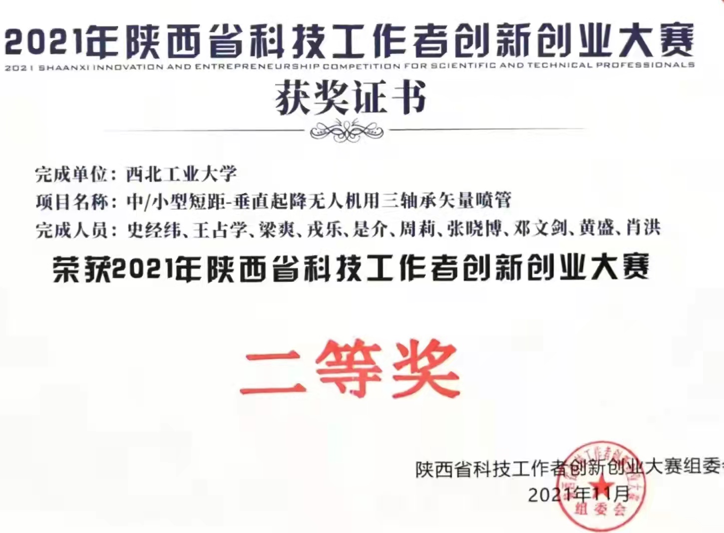 史经纬副研究员所属的喷气推进理论与工程研究所由王占学教授创建,科研氛围浓厚,学术成果突出。该团队主要从事航空发动机总体、排气系统和推力矢量技术方面的研究,在新概念气动式矢量喷管、大偏角机械式矢量喷管综合设计、评估和实验技术方面拥有厚实的研究基础,开发的三轴承矢量已在多款小型无人机上得到应用。本次双创大赛中以“中/小型短距-垂直起降无人机用三轴承矢量喷管”项目获二等奖。