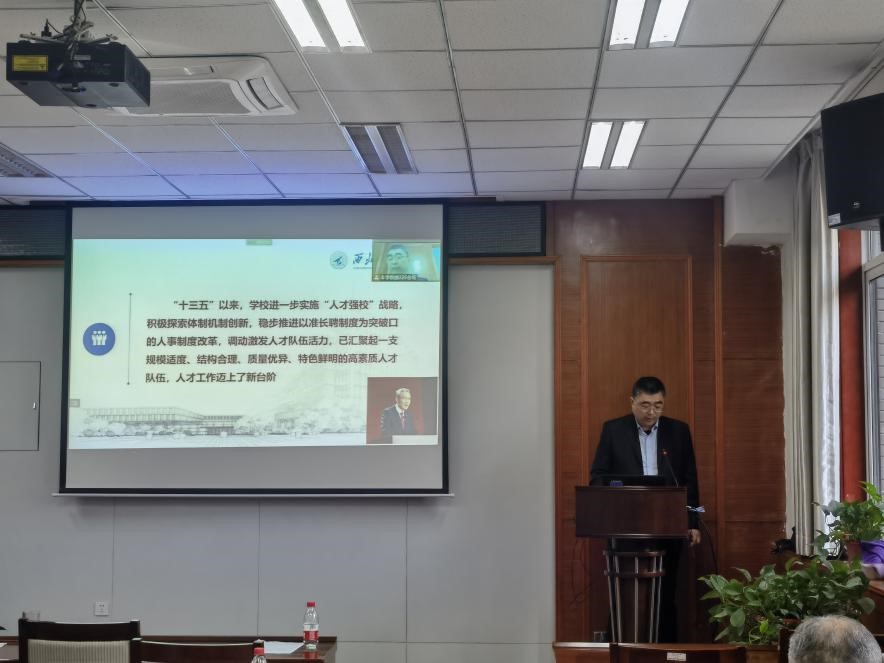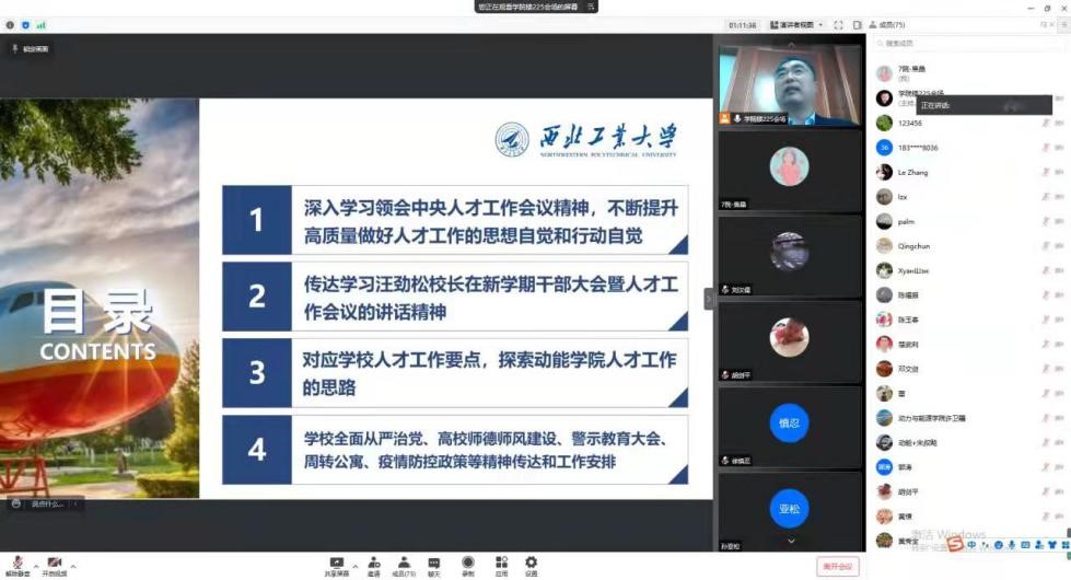 闫育周通过中央人才工作精神及学校人才工作要点,结合新一轮“双一流”建设和“十四五”规划的重点任务,进一步理清学院人才工作战略目标和思路举措。一是要坚持党管人才促发展,全面推进以“引才、育才、用才、成才”为主线的冬青人才计划,大力实施人才引进入职“六到位”,精心打造人才成长“四个赛道”,全面推动学院人才工作再上新台阶;二是要全面打造师资队伍建设和支撑服务系列化,围绕挂职、1+N支撑团队、博士后联合培养、人才项目申报、教材专著、主机院所调研等系列,开展有组织的人才支撑保障;三是要围绕新一轮岗位聘任,建立科学规范的聘用和晋升制度。为建设世界一流学院提供有力的人才支撑。此外,会议也为全院教师解读了学校人事文件制度的新变化。
