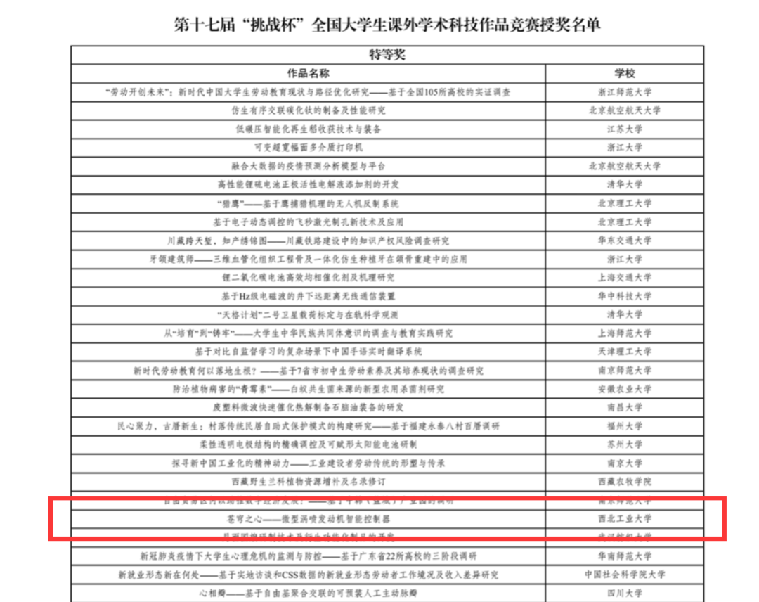 经过激烈角逐,我校在2021年“挑战杯”国赛中荣获特等奖1项(全国共49项,陕西仅2项),一等奖与二等奖各1项,三等奖3项。