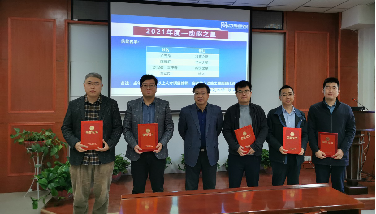 在学院楼225举行了2021年度动能之星颁奖仪式暨青年教师座谈交流会。近40余名青年教师参加了座谈。会议由王占学院长主持,并就如何促进青年教师的科研、教学、思政方面的发展以及团队建设等议题开展了热烈讨论。然后,mx动漫