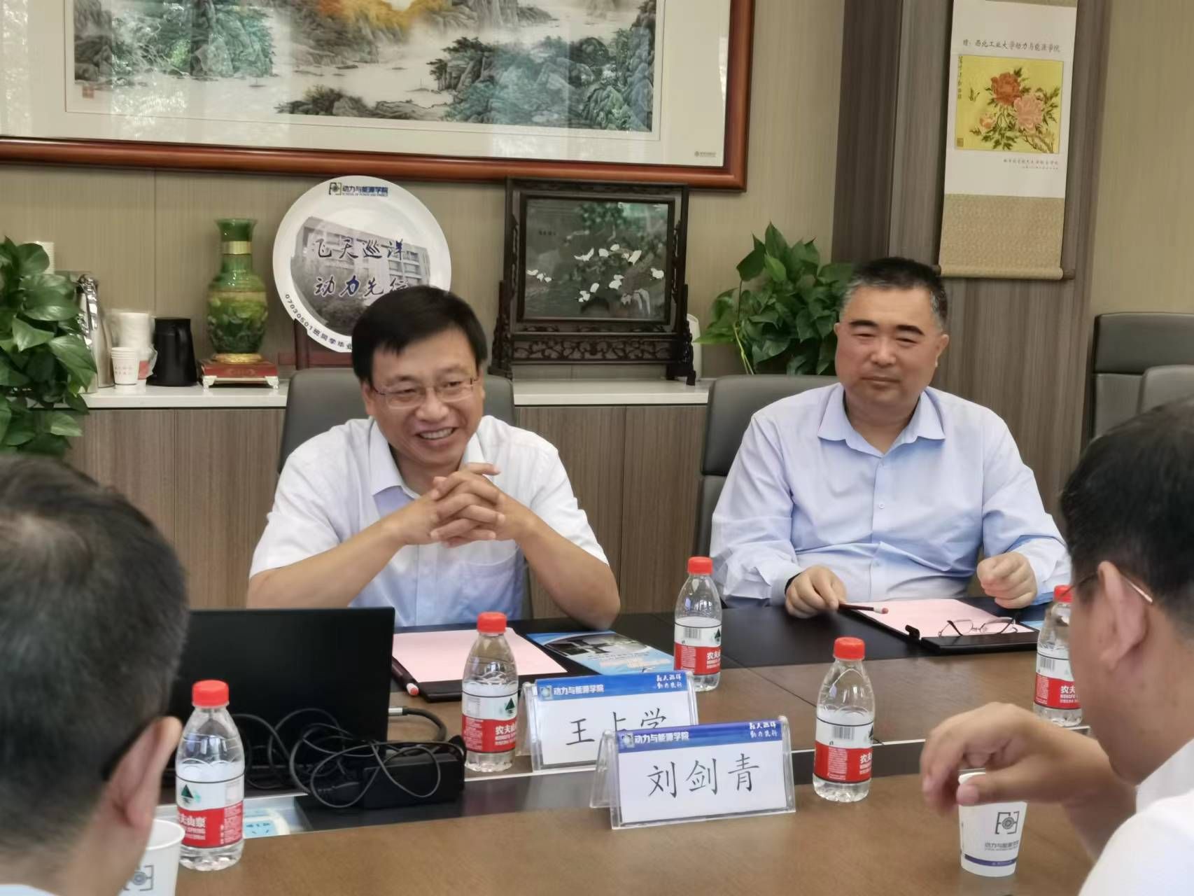 刘剑青一行在院党委书记闫育周的陪同下,先后参观了何尊广场、院史馆、俄乌交流中心等。随后与俄乌中心成员、凌云班学生代表进行座谈交流。