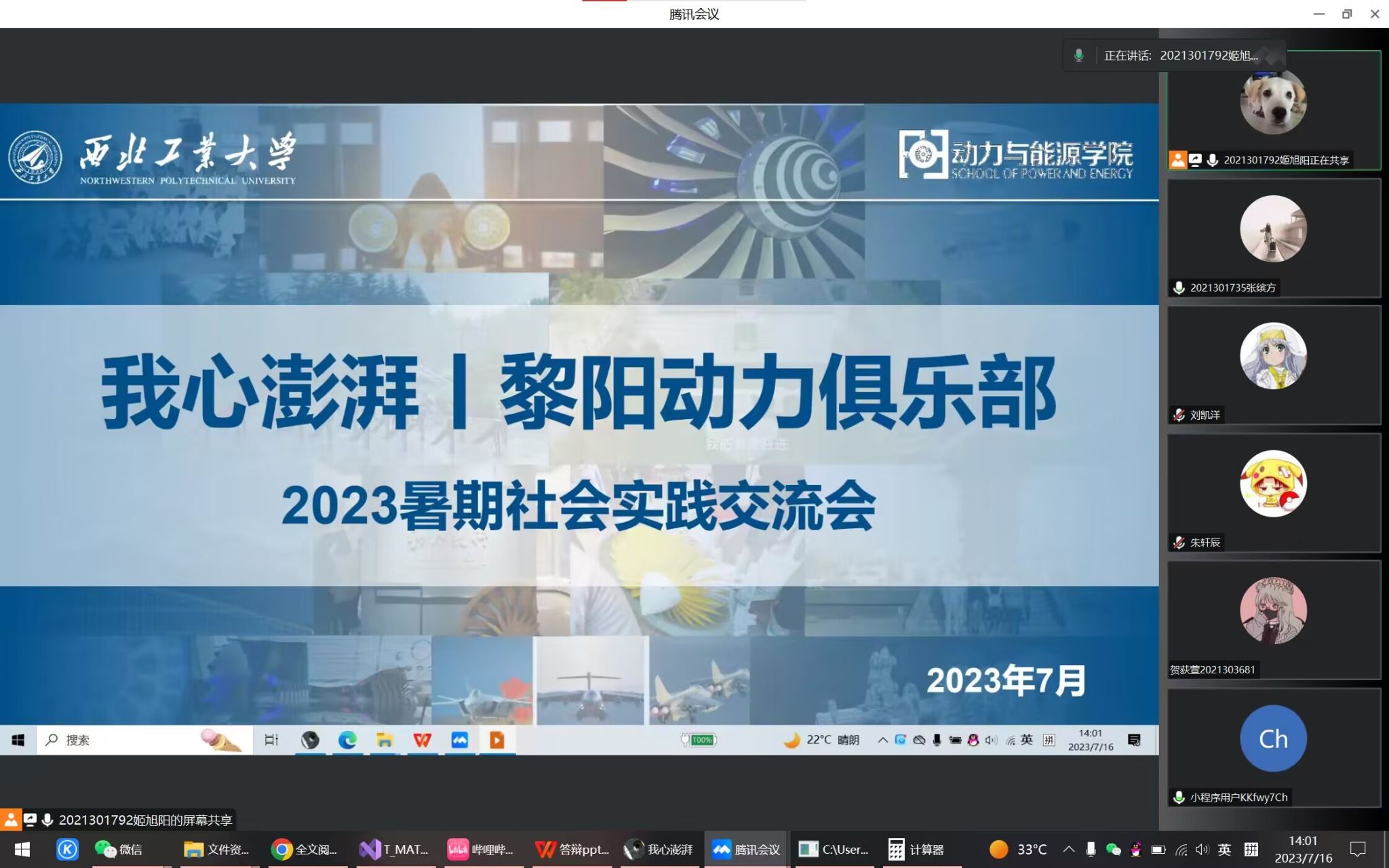 的了解情况与看法;并于7月16日晚间与另一支到黎阳动力俱乐部学习调研的队伍进行线上交流,以交流成果,深化认识。