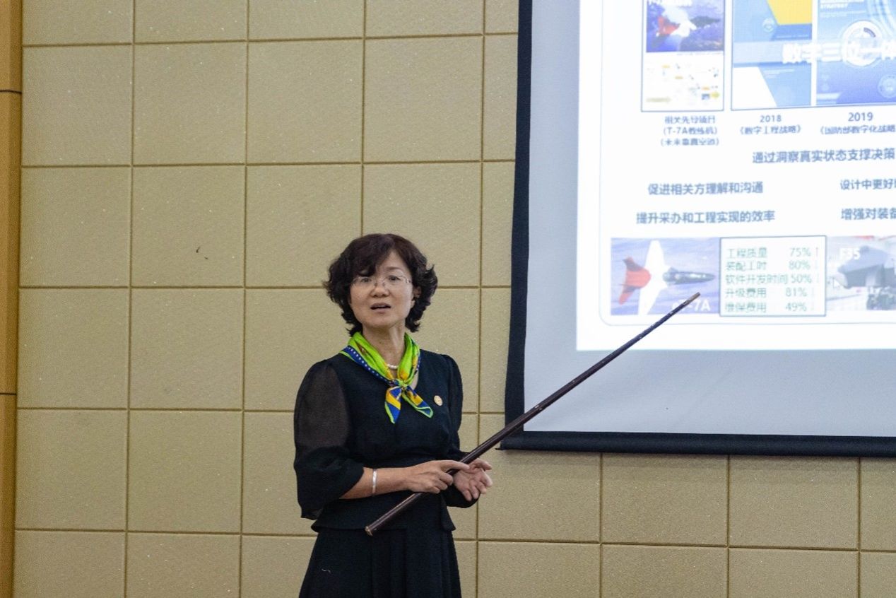 黄维娜总师结合自己多年的工作经历,为师生做《航空发动机数字工程实践与思考》专题报告。报告开始,黄维娜总师强调:航空发动机作为国之重器,是一个国家科技水平和整体实力的集中体现,已成为我国实现制造强国的十大重点领域之一。航空发动机技术复杂程度和性能指标要求不断提高,产品研发难度日益增大,研制进度愈加紧迫。因此,亟需推进航空发动机数字工程,以满足新时代航空发动机协同、敏捷、高效研制的需求。