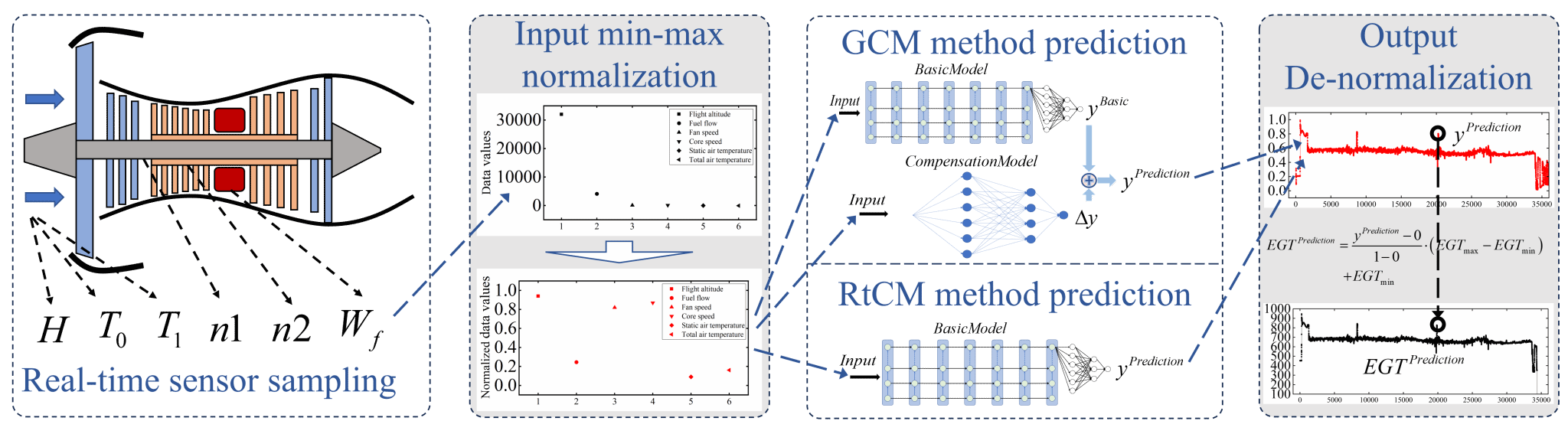 针对温度参数测量误差较大的问题,团队提出了基于泰勒展开的全局补偿和实时补偿两类方法,进一步提高了整机数字孪生模型的精度,并针对航空发动机机载排气温度的实时监控和预警开展了模型的验证,实现了以排气温度为指标的性能衰退和险情预警。该研究成果发表于《Engineering Applications of Artificial Intelligence》。