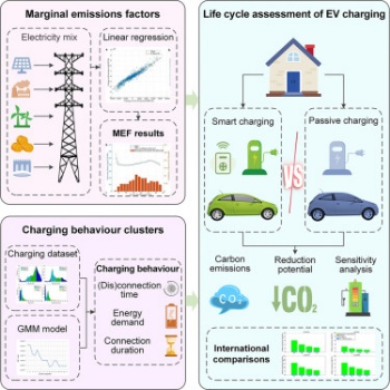 风能和太阳能目前面临间歇性和不可调度性的问题,实现匹配发电的需求和供应存在巨大技术挑战。现阶段的普遍应对措施是在电网混合产生相对较低的温室气体排放期间充电,同时对充电时间优化以减少温室气体总排放。