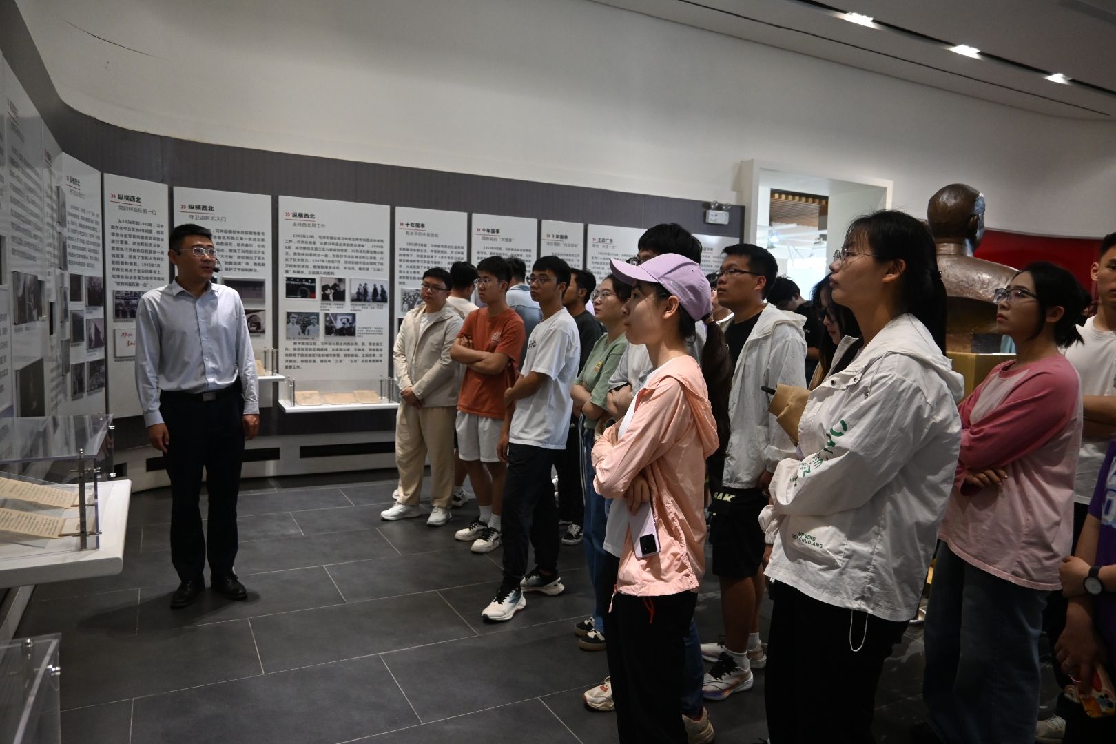 参观过程中,入党积极分子们跟随讲解员的步伐,认真聆听每一个历史细节,仔细观看每一件珍贵文物。他们时而驻足凝视,时而低声交流,无不被先辈们坚定的革命信念和无私奉献的精神所打动。在纪念馆的展厅里,一幅幅生动的历史照片、一件件珍贵的革命文物,都仿佛在诉说着那段峥嵘岁月中的英雄事迹。