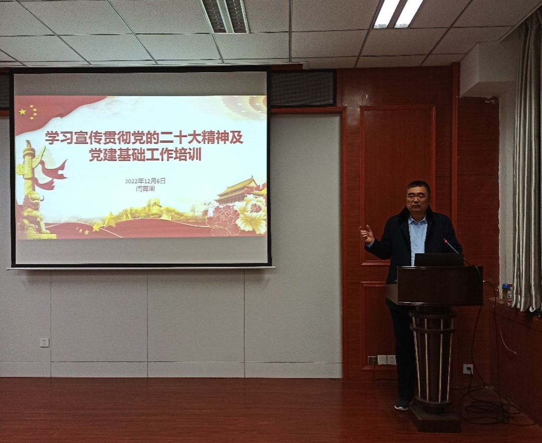 党委书记闫育周以“学习宣传贯彻党的二十大精神暨党建基础工作培训”为题授课专题党课、思政课,所有学生党支部书记和部分支部委员参加了此次学习。