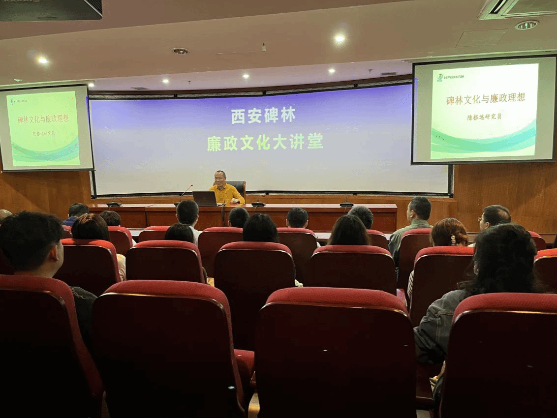 参观学习中,大家首先观看了廉政教育宣传片《清风正气,镂石成金》,聆听了碑林廉政教育基地陈根远研究员的《碑林文化与廉政理想》专题报告。