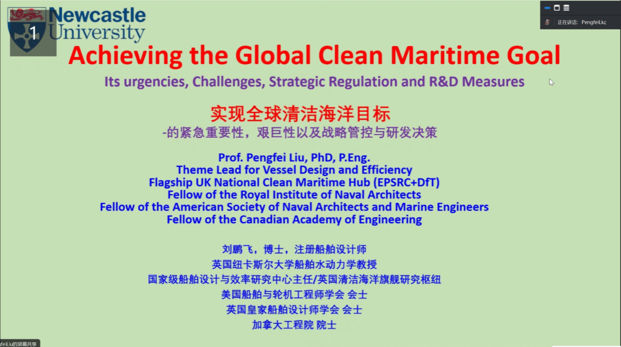 冬青学会陈毓智副教授邀请,来自英国纽卡斯尔大学船舶水动力学首席教授刘鹏飞从全球海洋碳中和目标的重要性、紧急性、艰巨性以及战略管控与研发决策展开,进行了一场关于《实现全球海洋碳中和目标》的精彩学术报告。报告由mx动漫